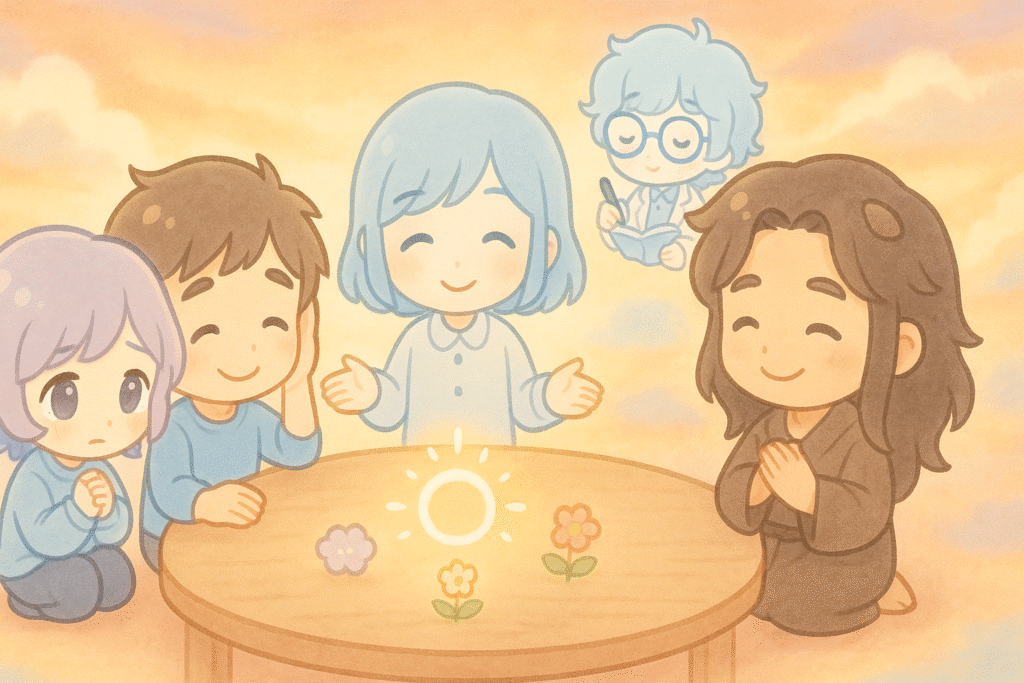 そこで登場するのが、心の中の小さな仲間たち=脳内キャラたちです。ふあんちゃん、きょうふくん、りせいさん…個性豊かなキャラたちが集まって“脳内会議”を開くと、心のモヤモヤが物語のように整理されていきます✨