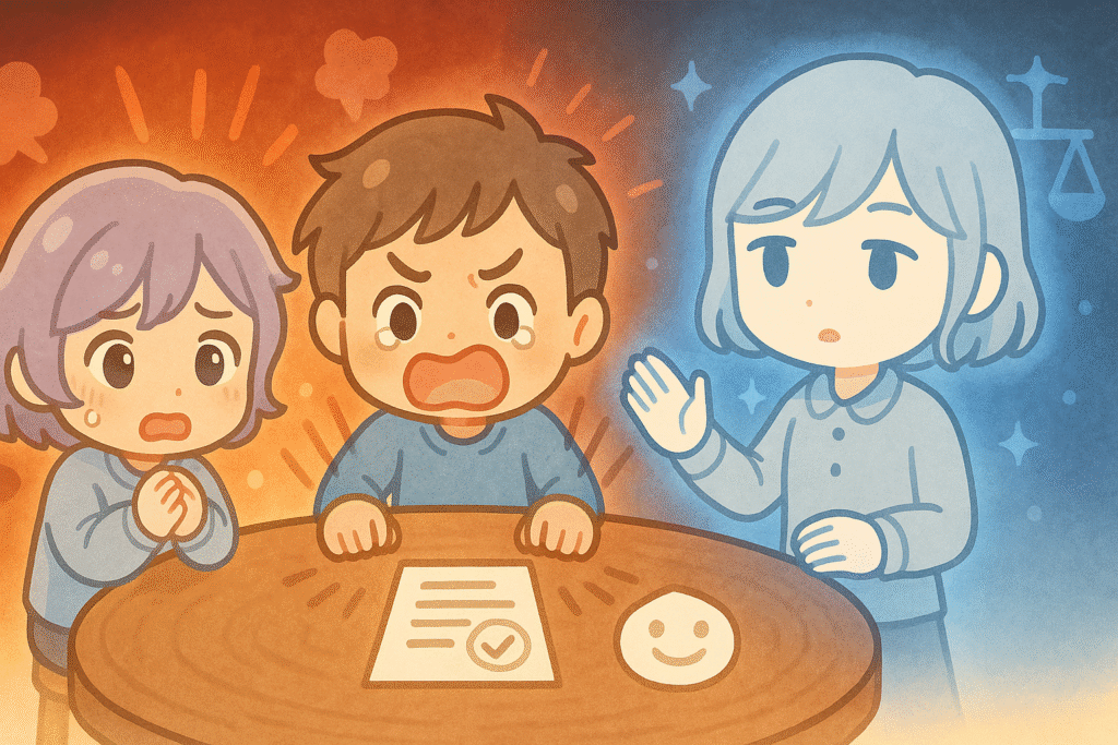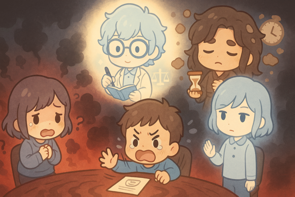 感情の嵐で荒れ狂っていた会議が、ようやく調停へと向かい始めました。