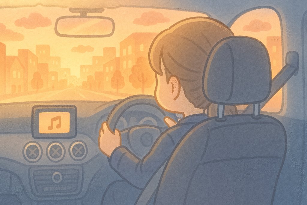 帰りの車の中。エンジンの音とタイヤがアスファルトをなぞるリズムが、今日一日の緊張をやわらげてくれるはずでした。